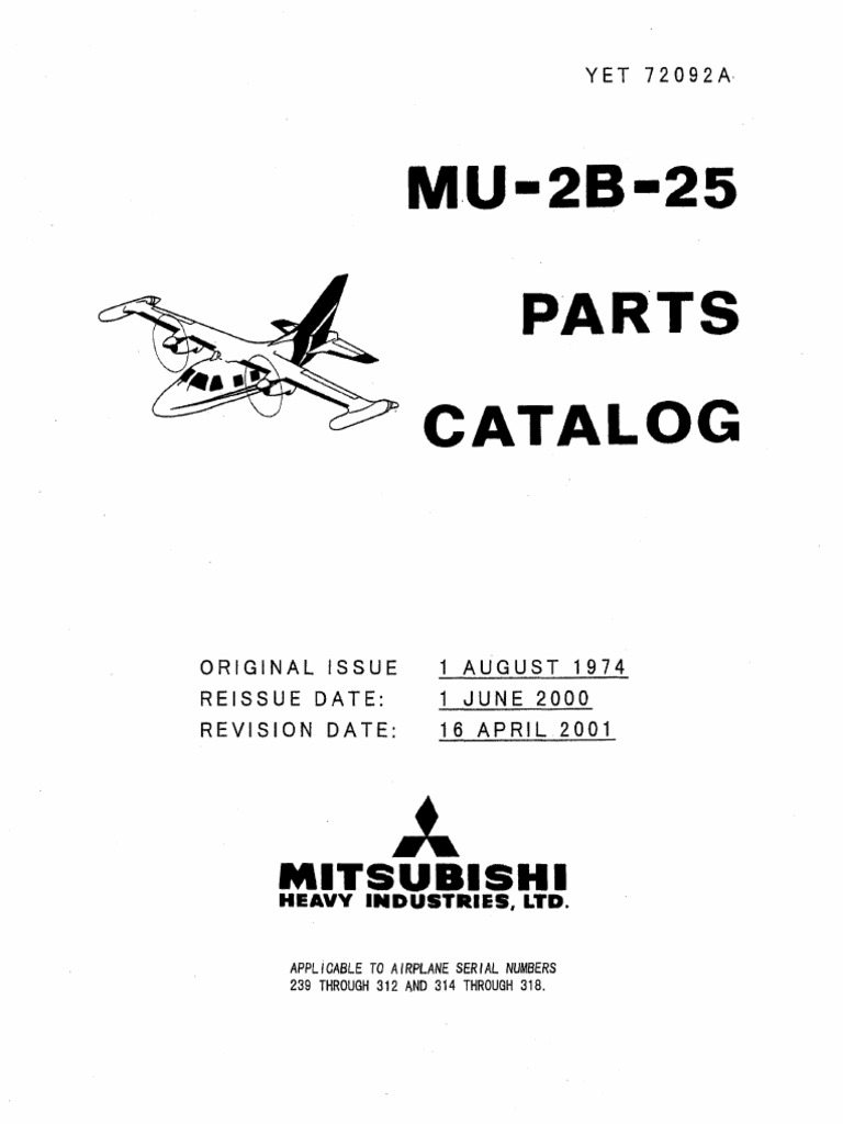Mitsubishi Heavy Industries MU2 Series Parts Catalog — Essco Aircraft