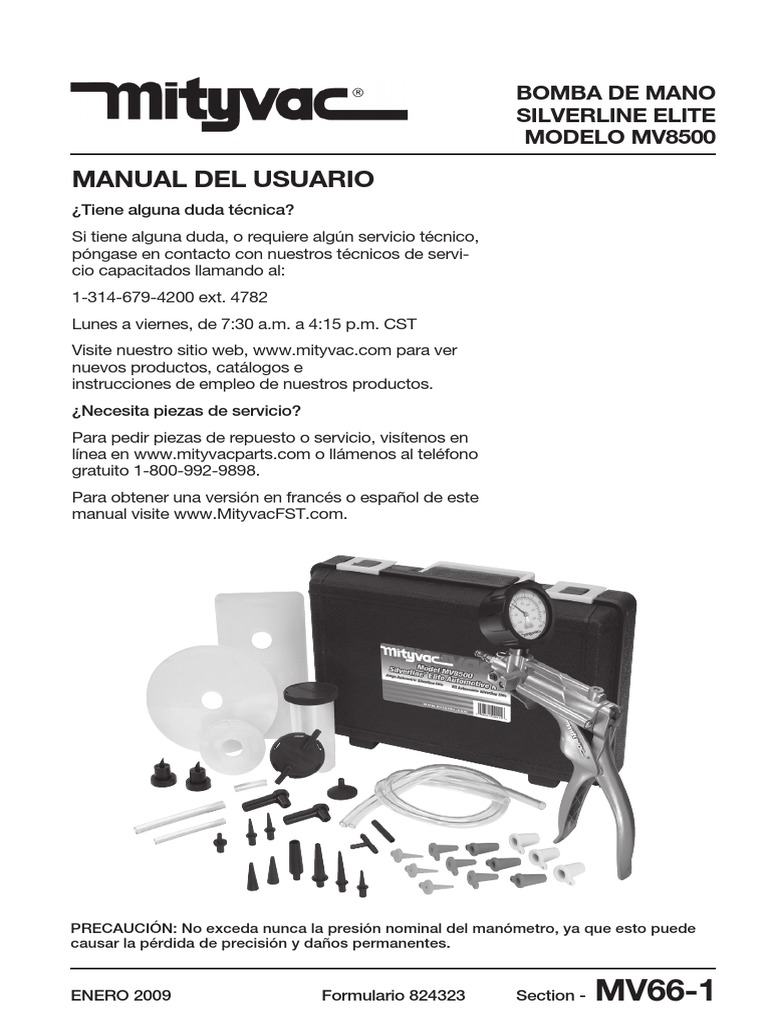Mityvac Silverline MV8500 (Bomba de Vacío) Download Free PDF Vacuum