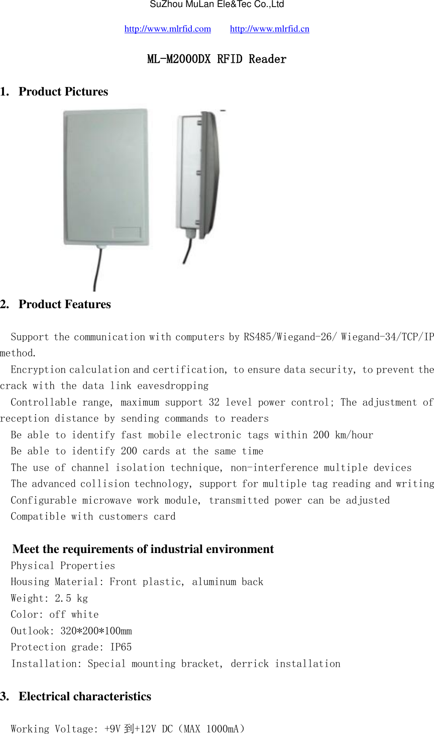 SuZhou MuLan Ele and Tec ML2000 RFID Reader User Manual