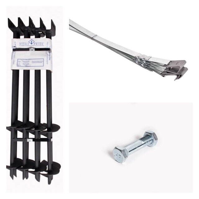 Mobile Home Part Set of 12 Auger Anchors; 8’ Tie Down Strap, & Bolts