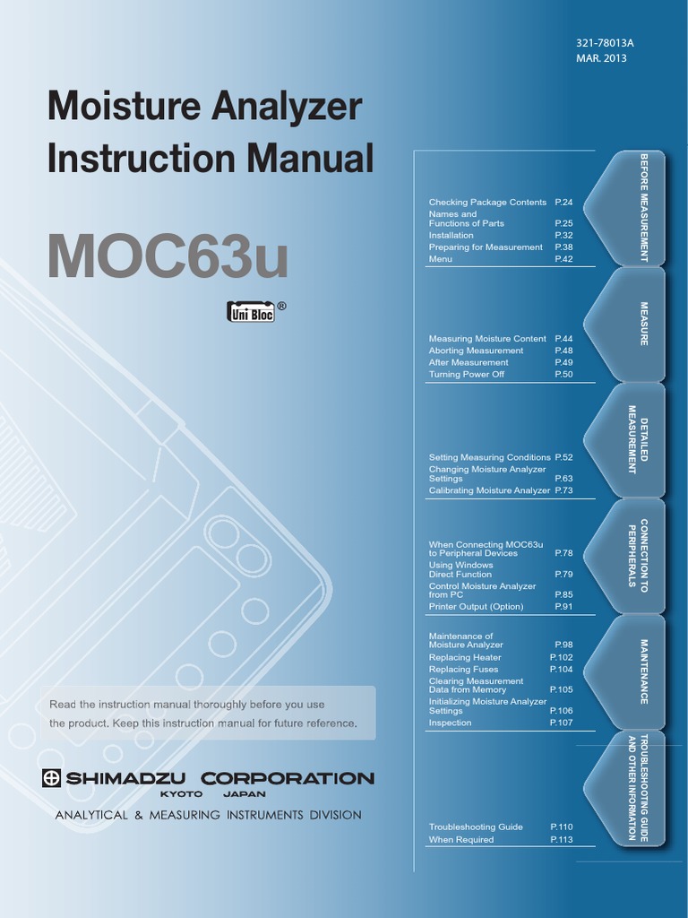 User Manual Moisture Analyzer Shimadzu MOC63u Chemitech IT Perdana