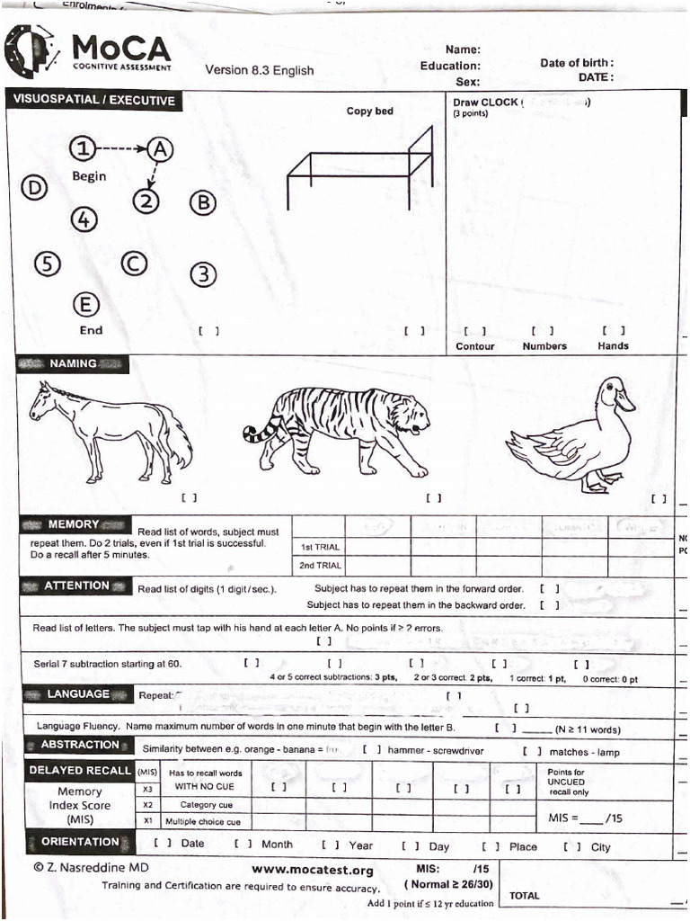 Montreal Cognitive Assessment (MoCA). Download Scientific Diagram