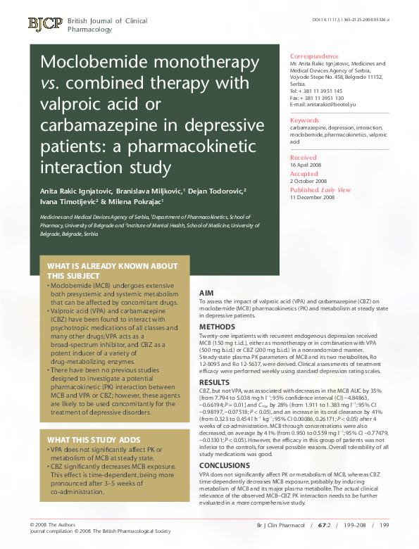 (PDF) Moclobemide monotherapy vs. combined therapy with valproic acid