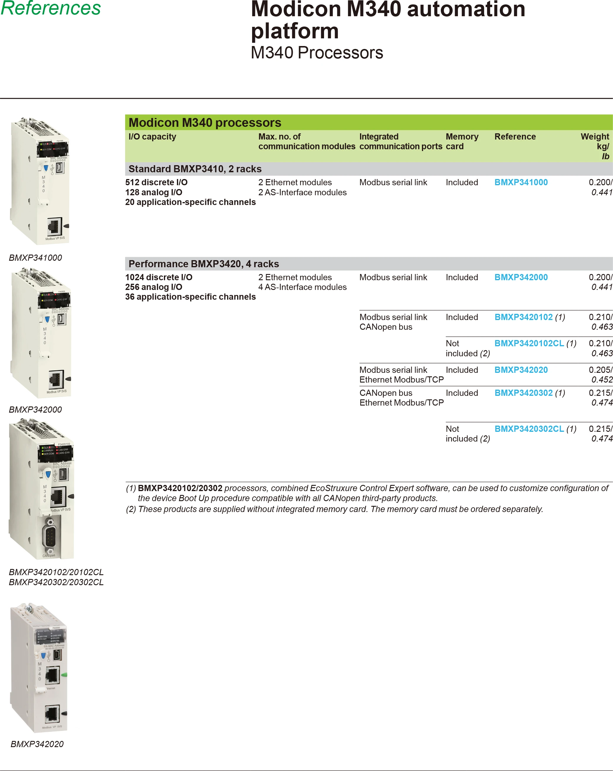 BMXP342020 Schneider Electric Processor Module, Modicon™ M340