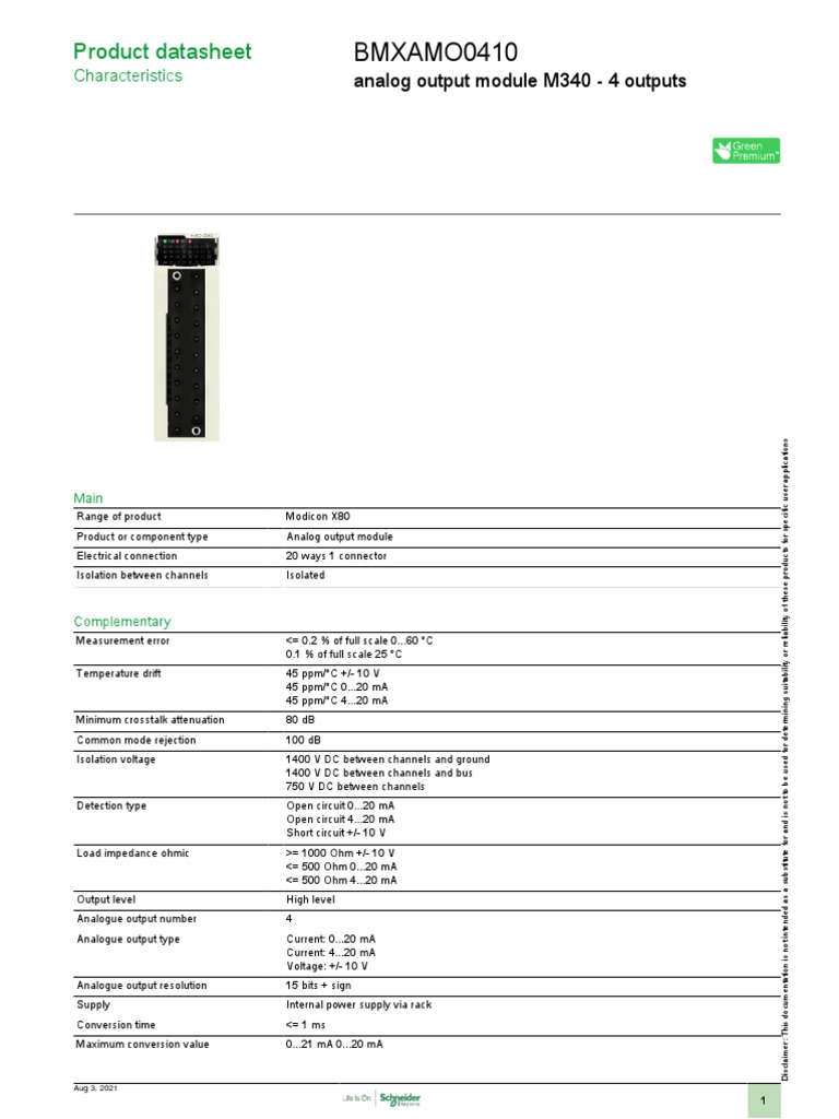 Modicon x80 I Os Bmxamo0410 PDF Power Supply Electrical Engineering