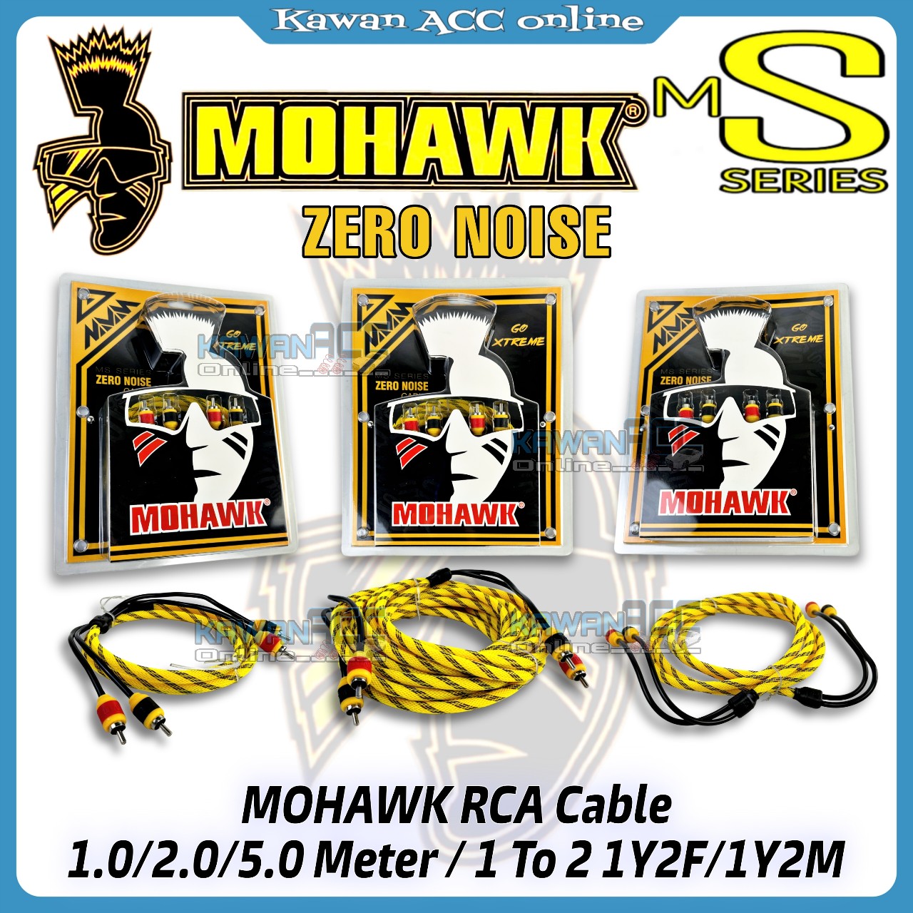 MOHAWK RCA Cable 0.5m / 1m / 2m / 5meter / 1 to 2 (1Y2F), (For Car