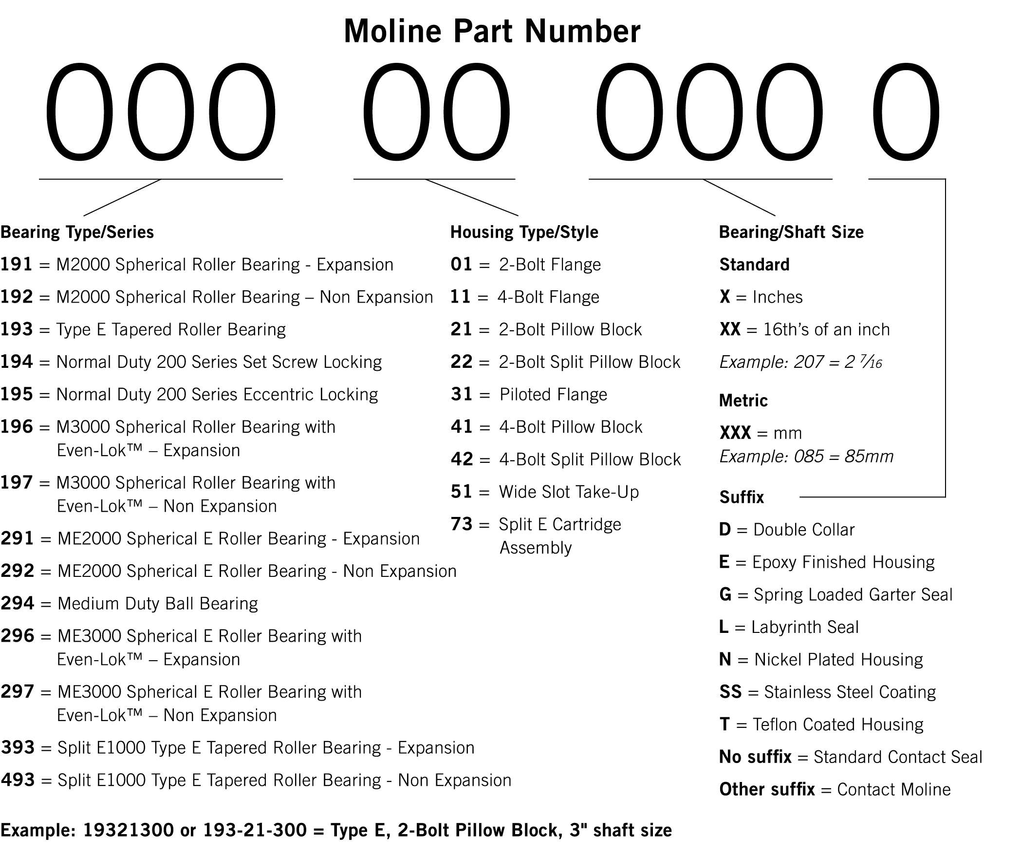 MOLINE BEARING, 2 1/4 in Bore, Spherical E Roller Bearing, Pillow Block