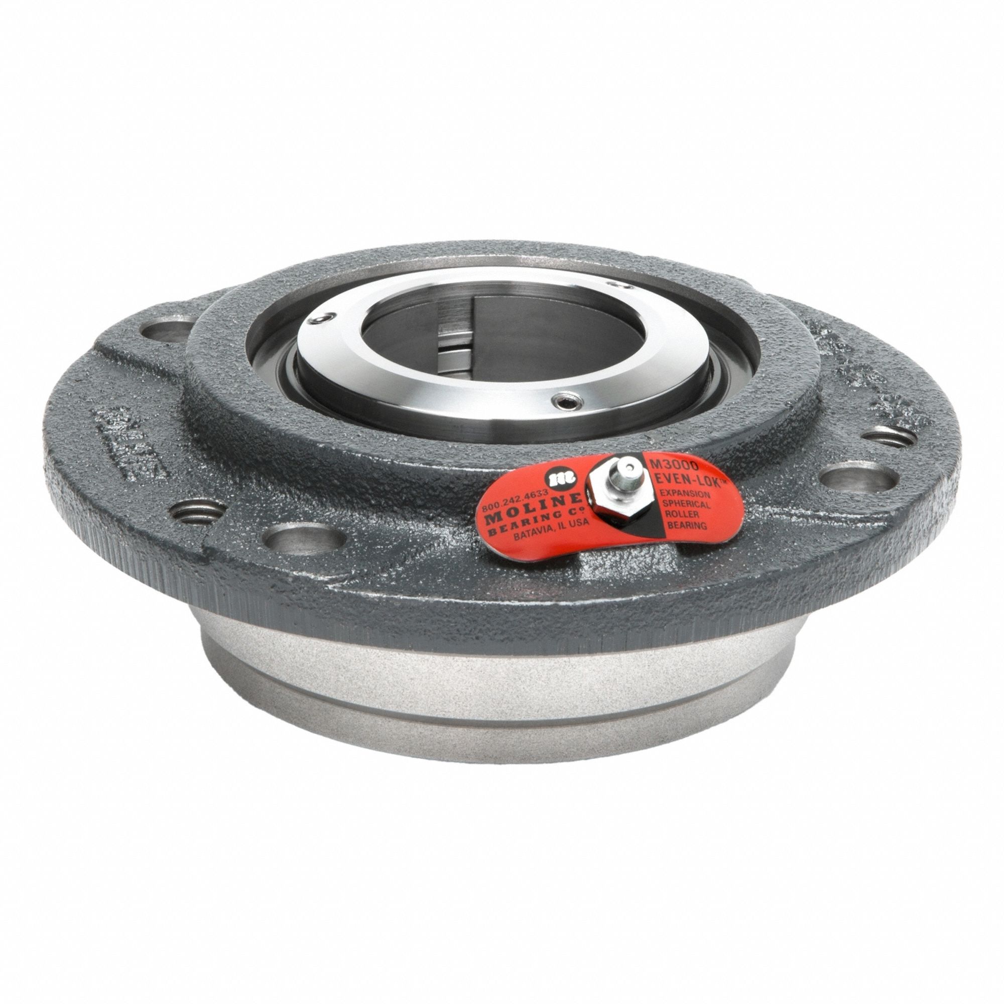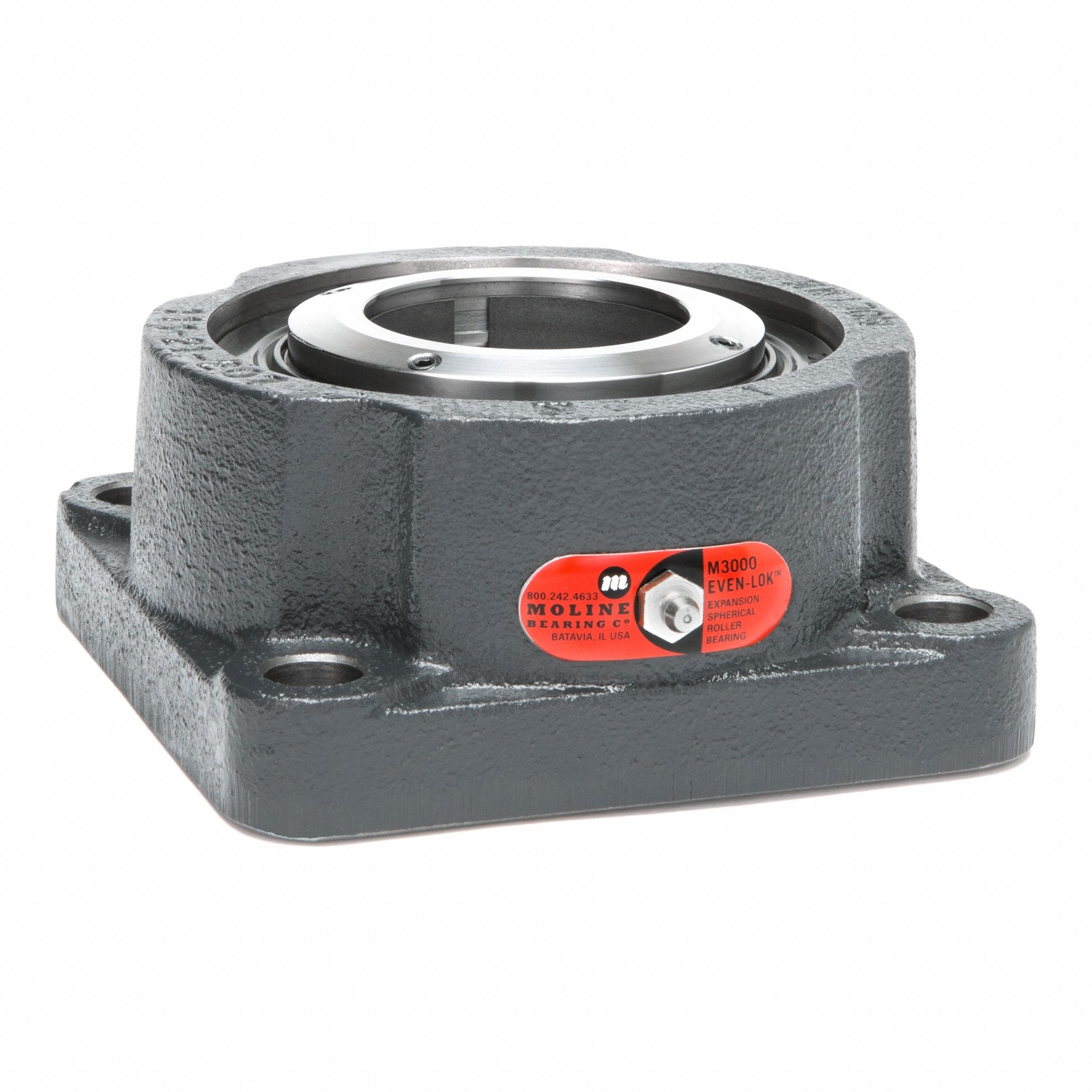 MOLINE BEARING, Spherical Roller, 3 in Bore, 4 Bolt Flange Bearing