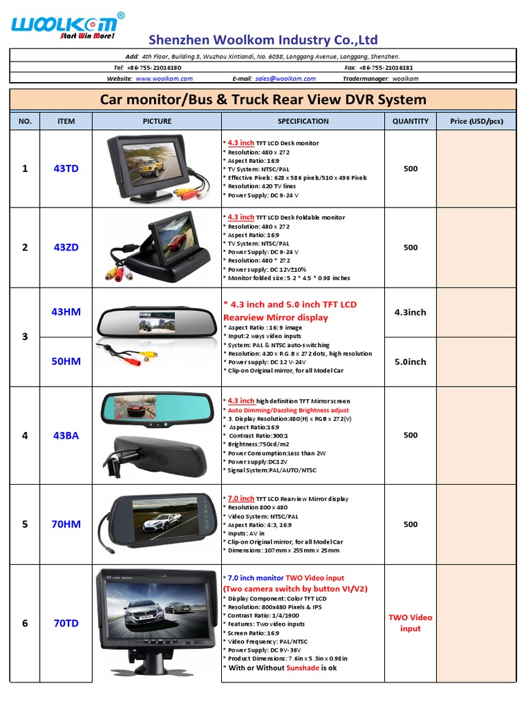 Car Display Monitor Catalog Woolkom PDF Display Resolution