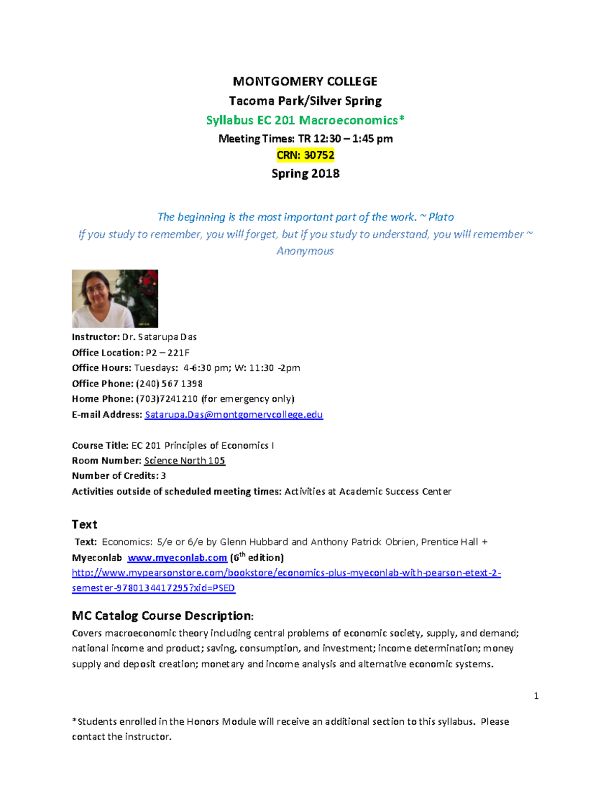 Syllabus Macro TR1230am Spring 2018 MONTGOMERY COLLEGE Park