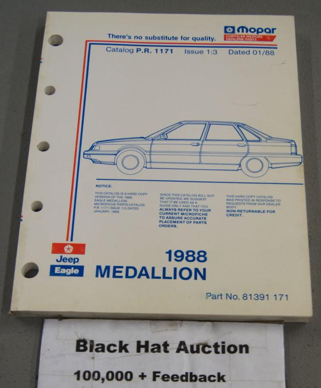 Find Mopar 1988 Eagle Medallion OEM Parts Catalog Manual in