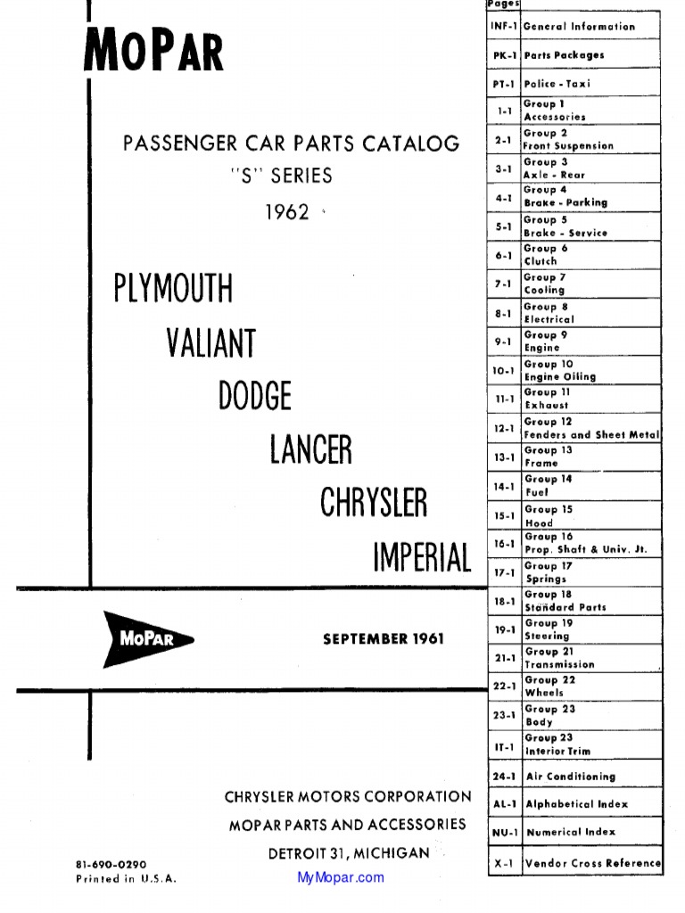 62 Mopar Parts Catalog PDF Vehicle Manufacturers Of The United