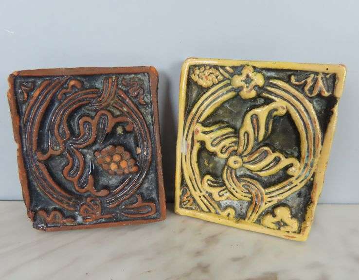 Lot of 2 Vintage Moravian Pottery and Tile Works Tiles GC5 Auctions