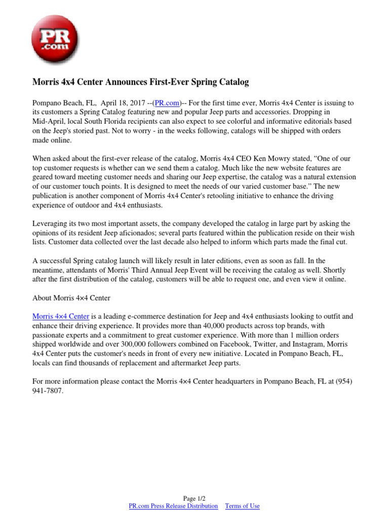 Morris 4x4 Launches Spring Catalog PDF Four Wheel Drive Mass Media