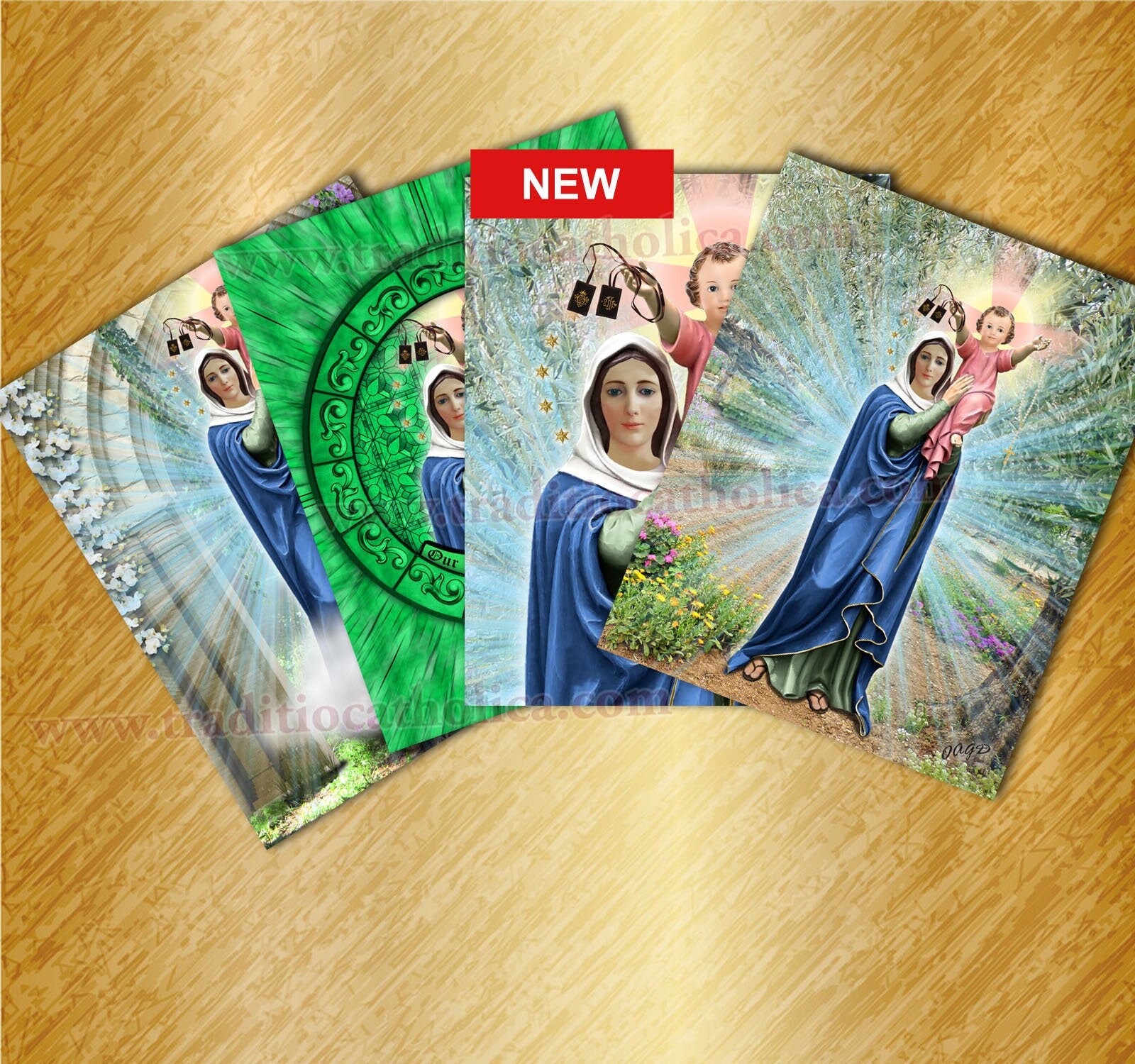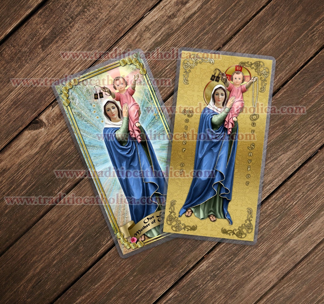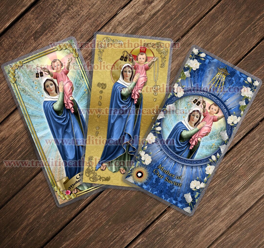 Our Lady, Mother of Our Savior Laminated Catholic Holy Cards. Statue of