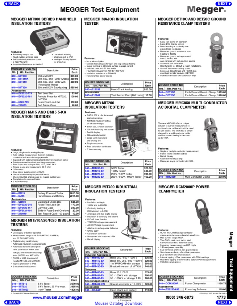 MEGGER Test Equipment Mouser Catalog Download PDF Insulator