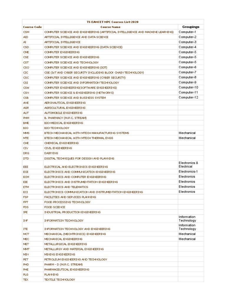 TS EAMCET MPC Courses 2020 PDF Engineering Computer Science