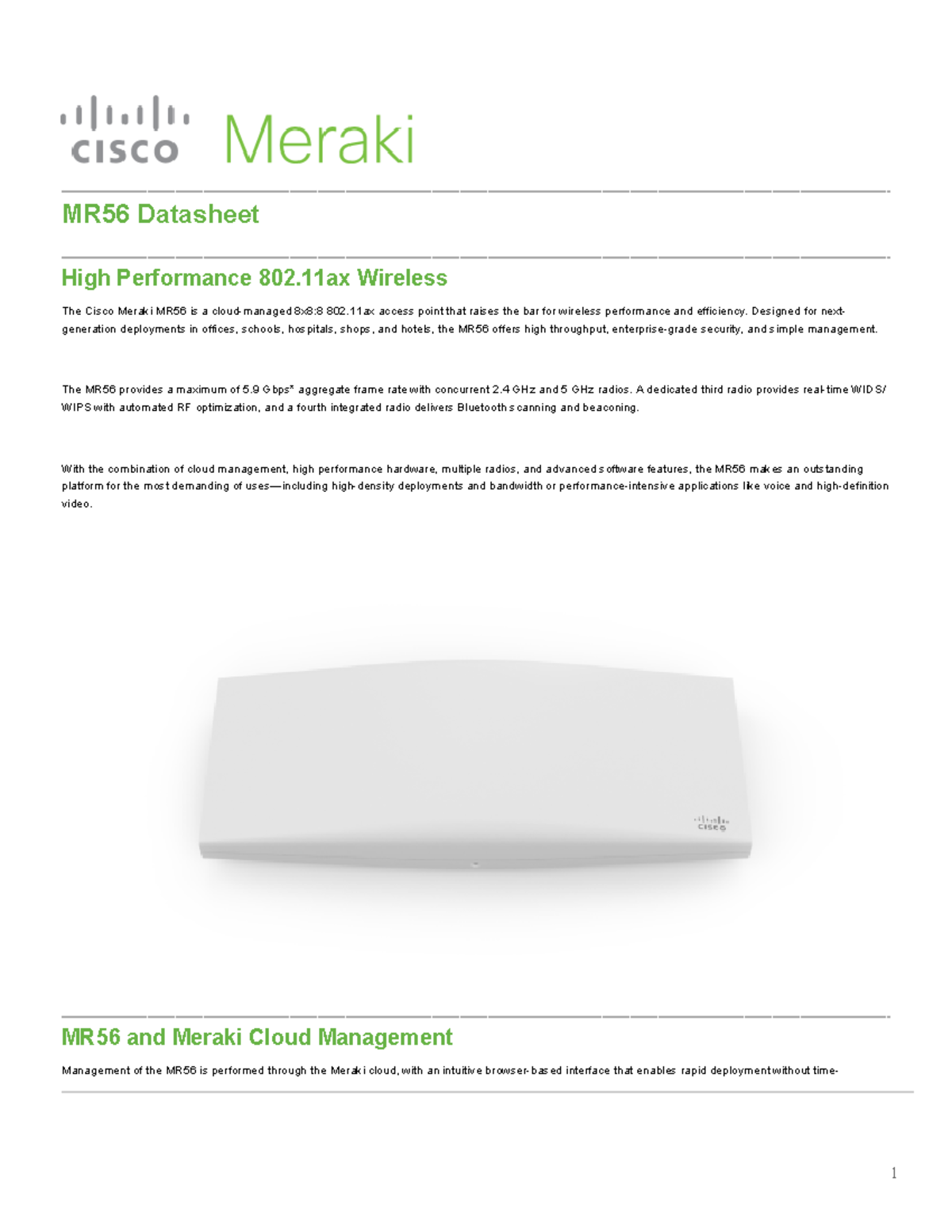 Meraki mr 56 accesspoint datasheet MR56 Datasheet High Performance
