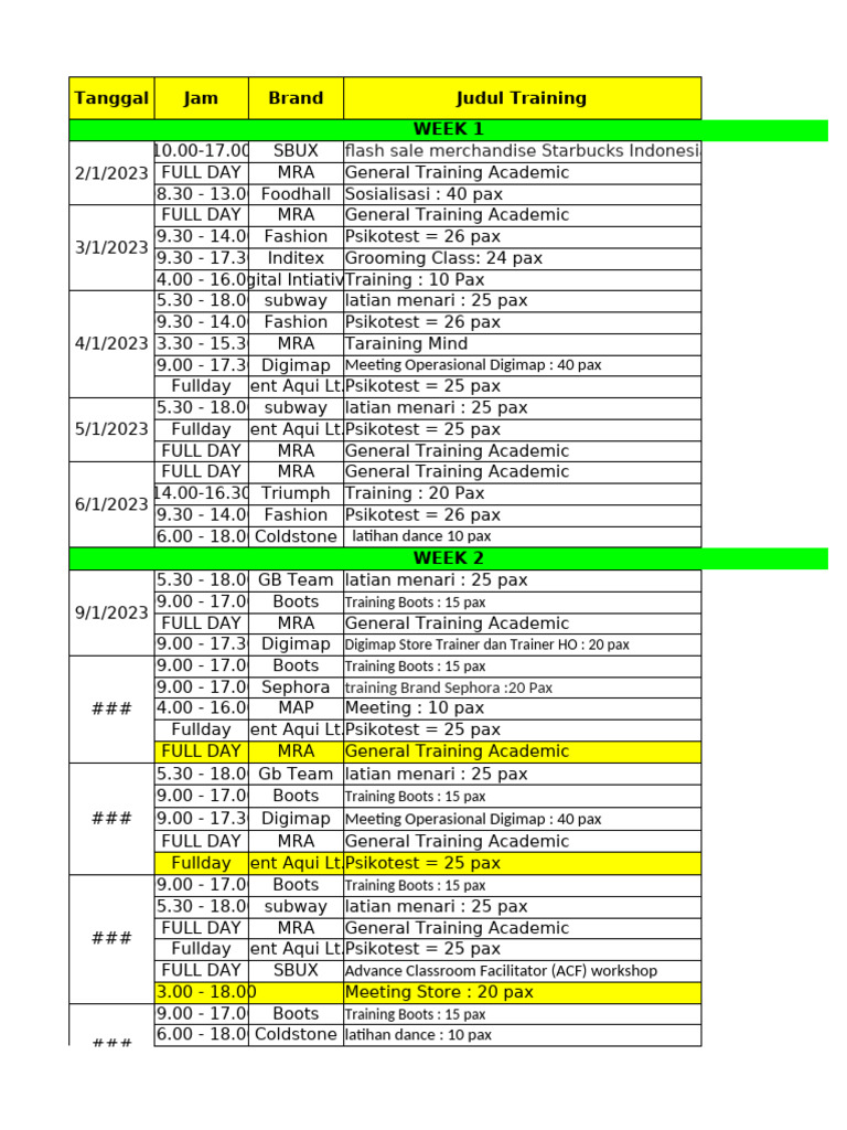 MRA Training Room Excel Template PDF Mahabharata
