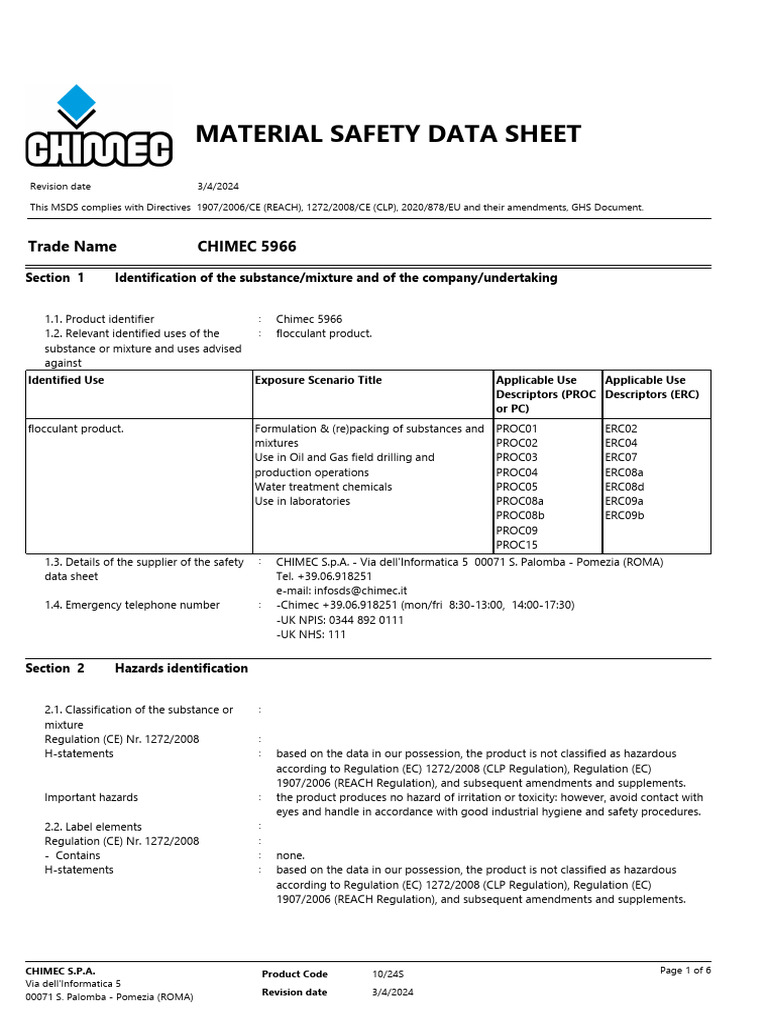 MSDSCHIMEC 5966En PDF Dangerous Goods Safety
