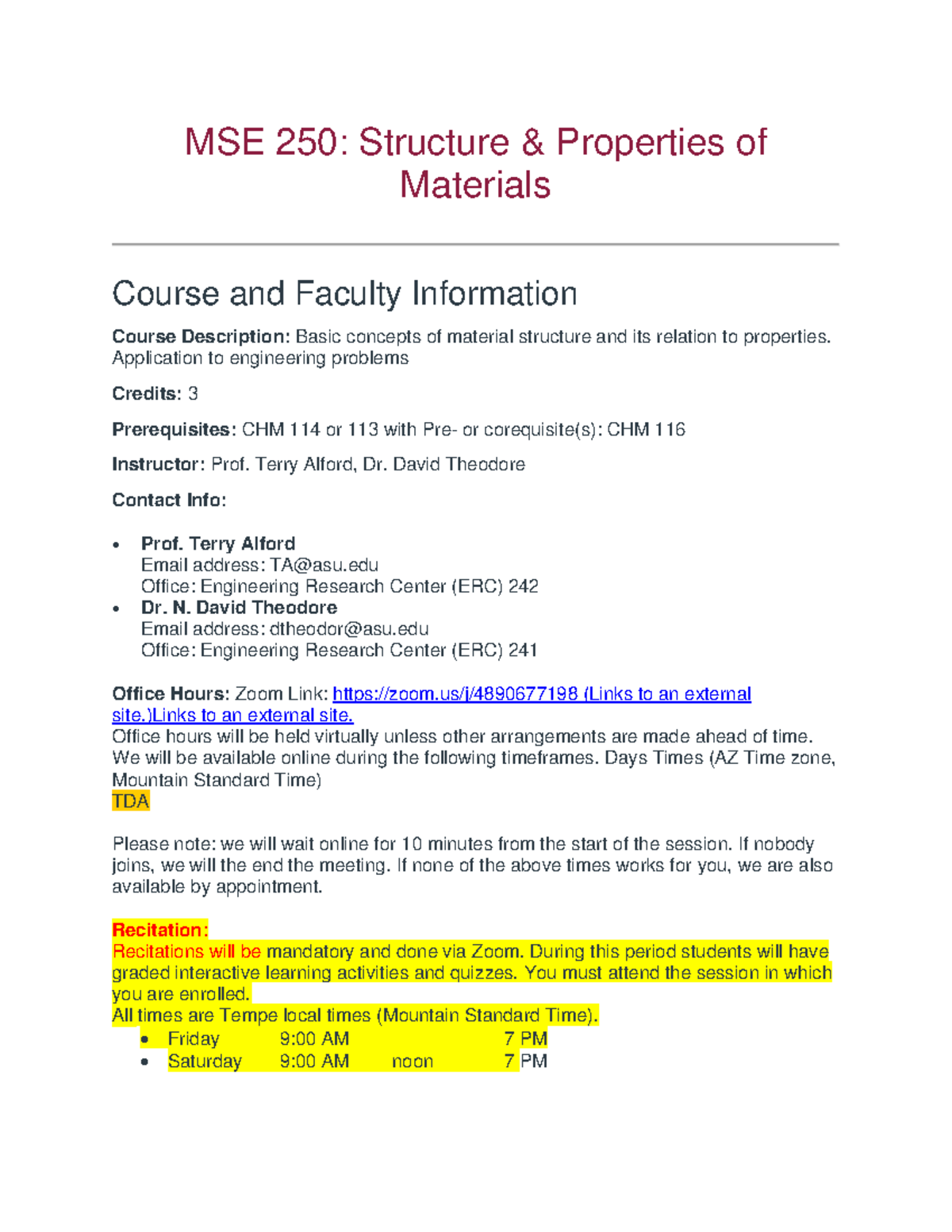 MSE 500 Materials Science & Engineering Syllabus Spring 2014