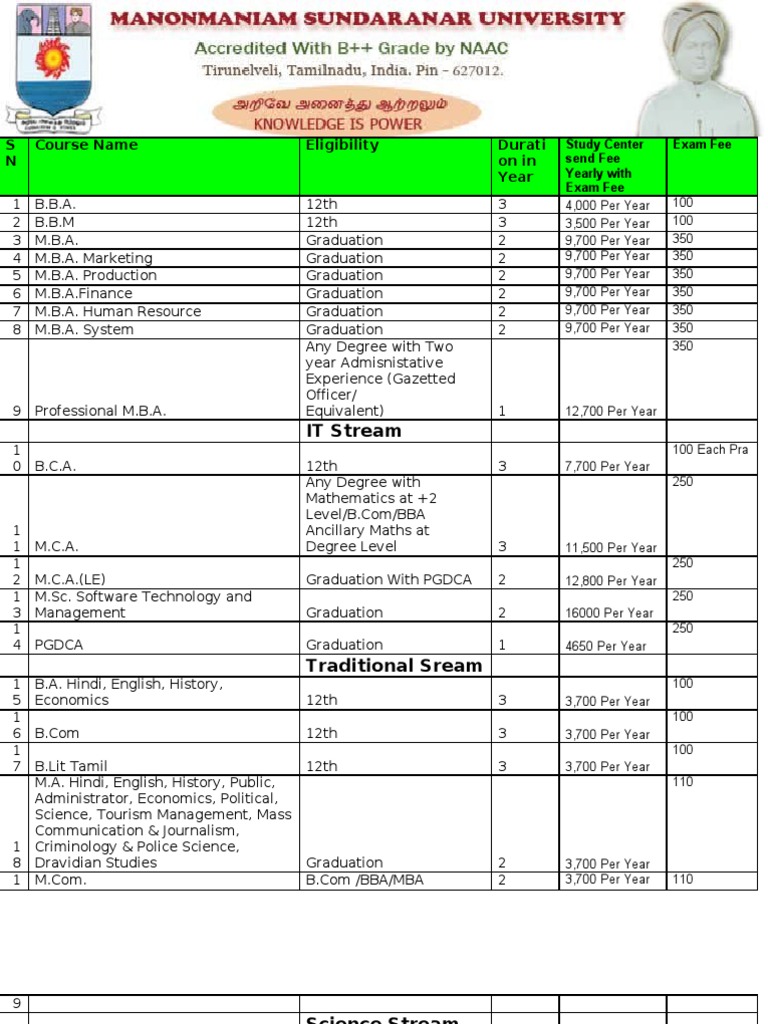 MSU Course List & Fee PDF Postgraduate Education Master Of