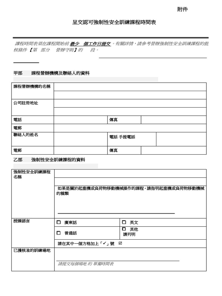 Submission of Time Schedule for Recognised Mandatory Safety Training