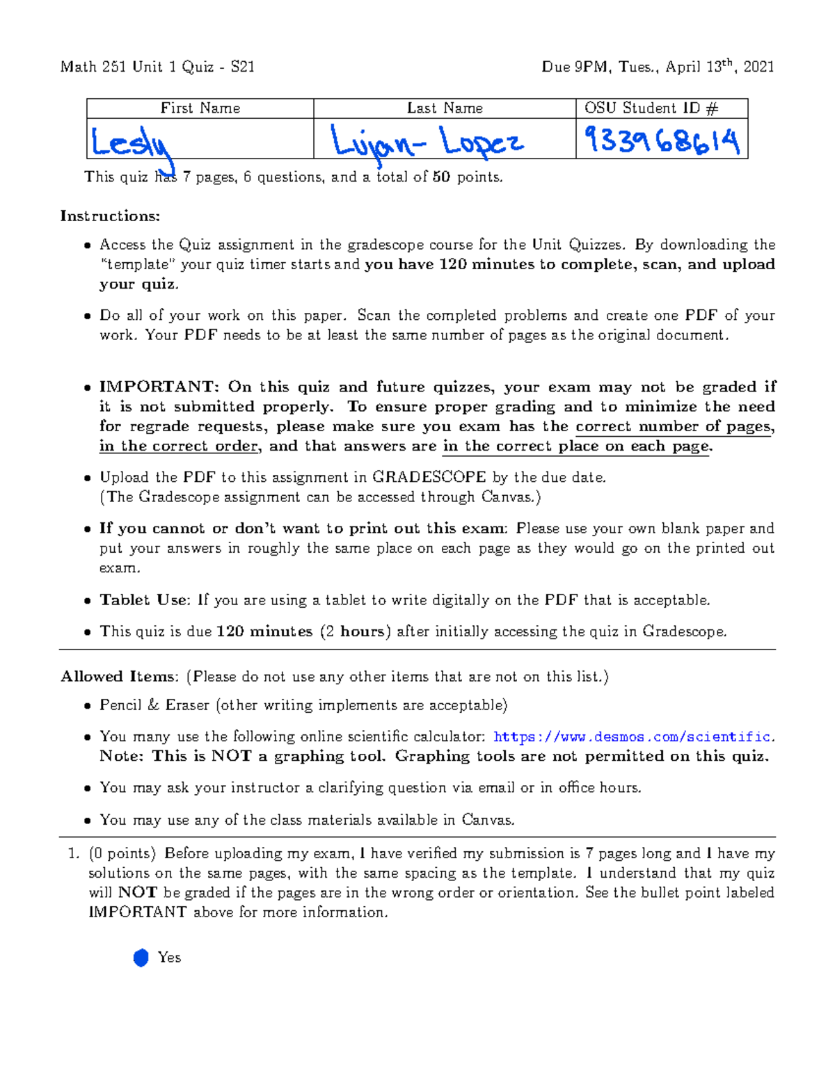 MTH 251Z Ecatalog Course Detail Schedule of Classes Oregon State