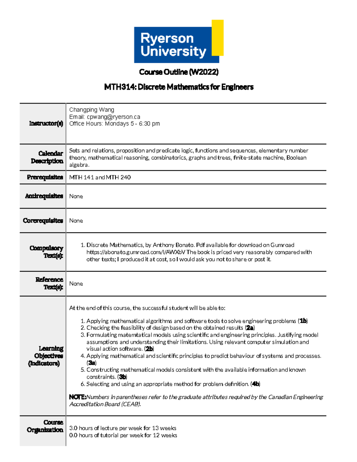 MTH314W2022Course Outline CW1 Course Outline (W2022) MTH314
