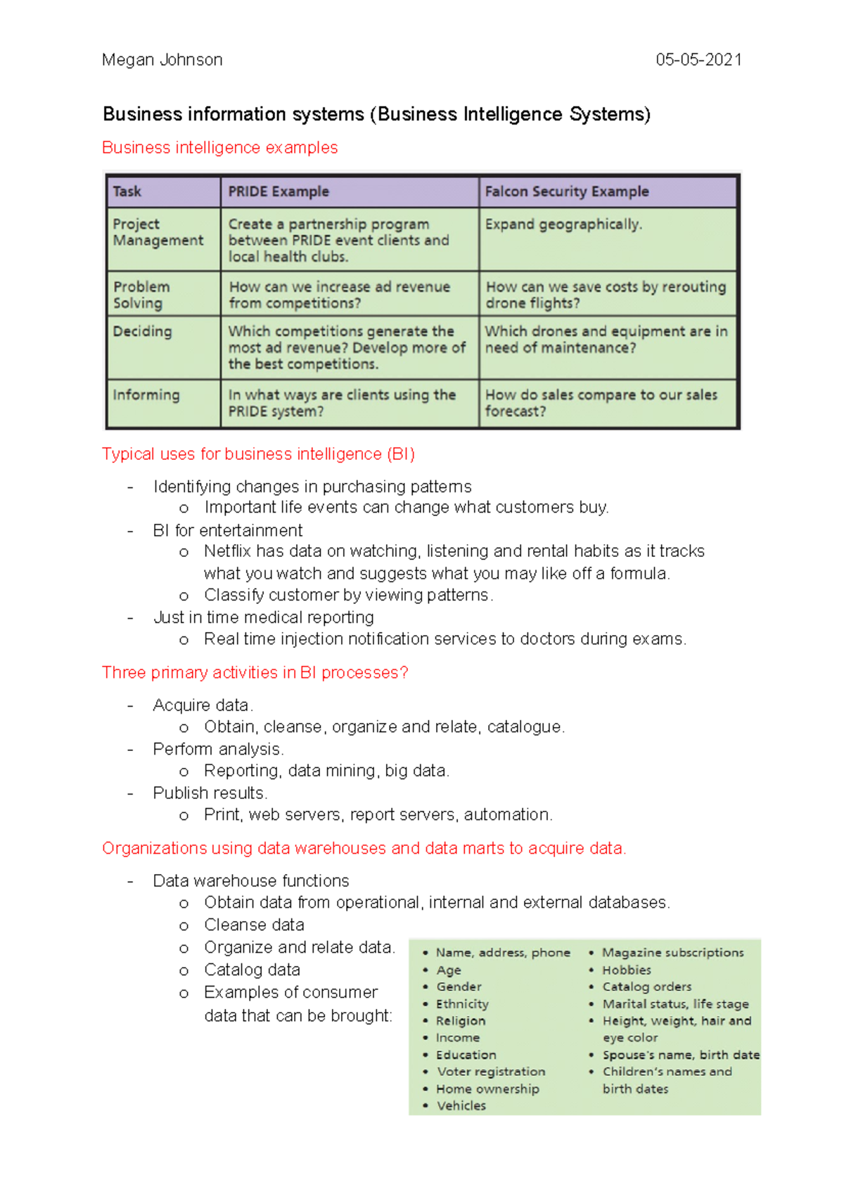 business intelligence systems Business information systems (Business