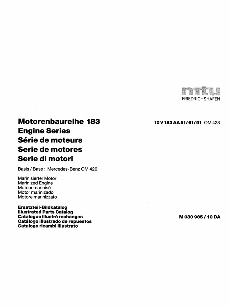 MTU 10V 183 AA516191 M030985 10DA.490 Parts Catalog PDF
