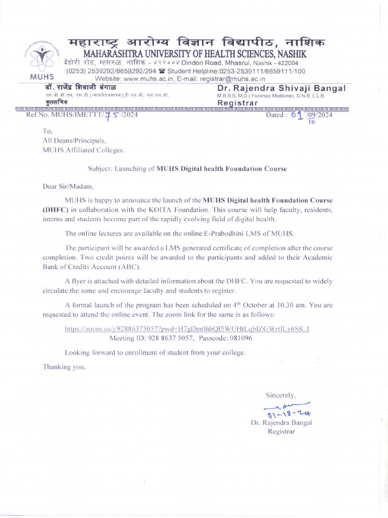 MUHS DHFC EPrabodhini Online Course 03102024 PDF