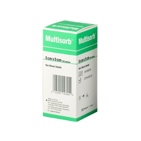 Multisorb Gauze Non Woven Swabs 5cm x 5cm (Pack of 100) WS Medical
