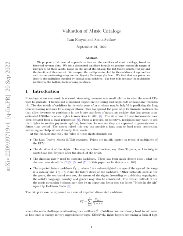 Thank you David Dunn Got the 41 pages Music Industry Valuation from