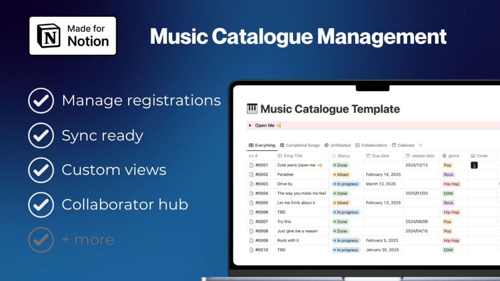 Songwriters and Producers Catalogue Management Template