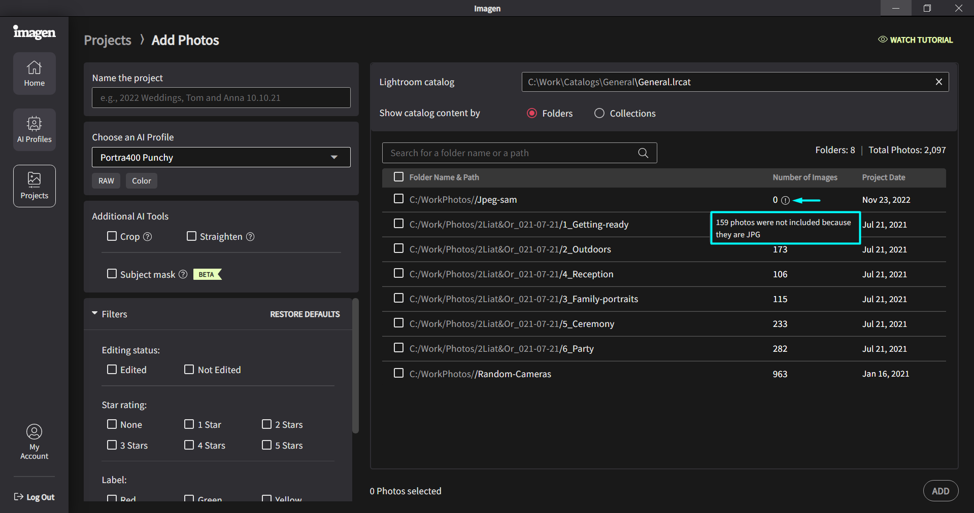 Imagen won't show photos from my Lightroom catalog Imagen