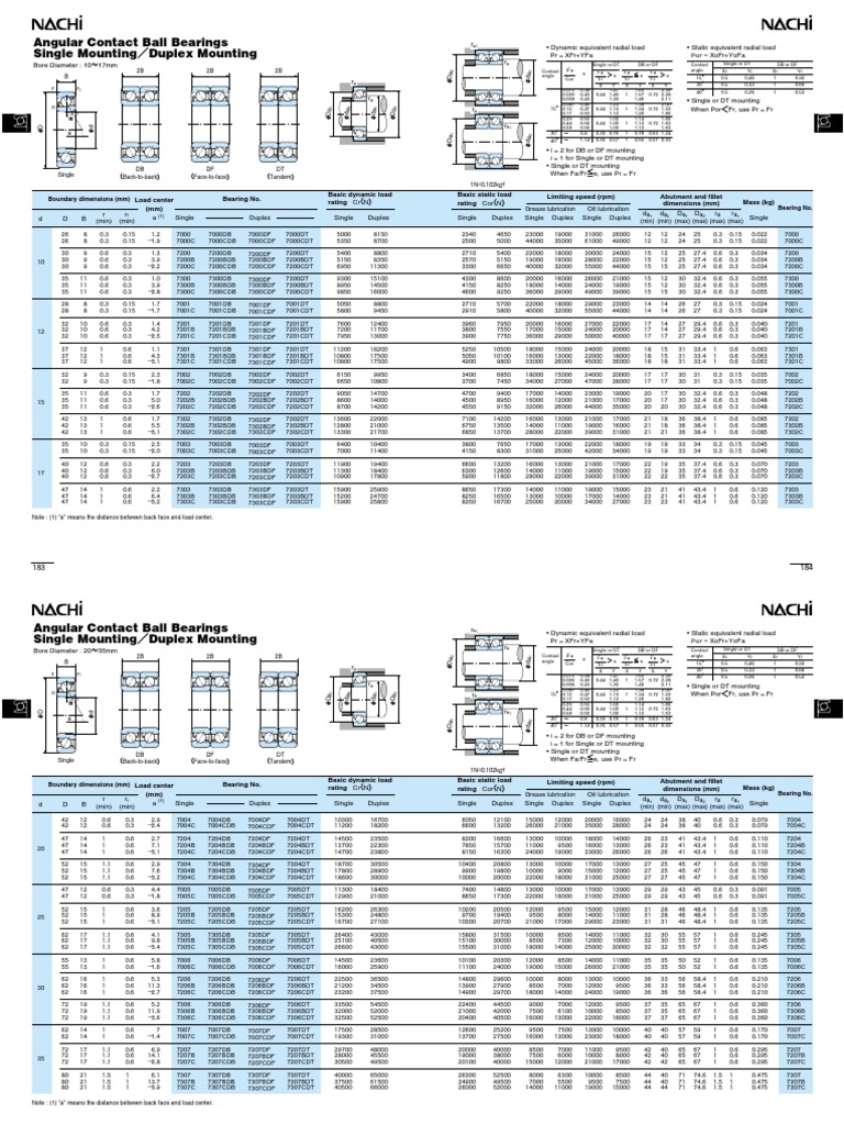 Nachi Angular Contact Bearings Dims PDF Lubrication Friction