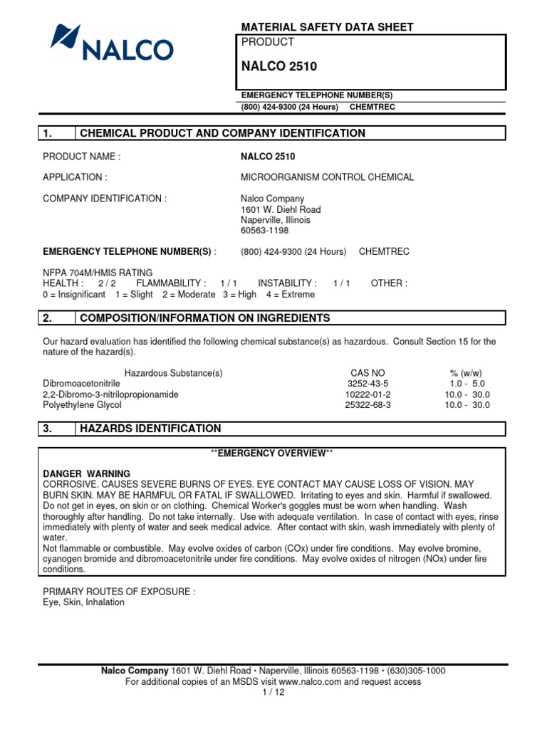 50 SDS Nalco Eliminox PDF Dangerous Goods Waste