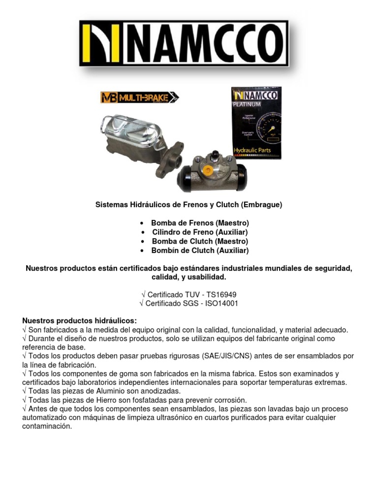 Namcco brake la más amplia gama de productos para frenos. Deivin