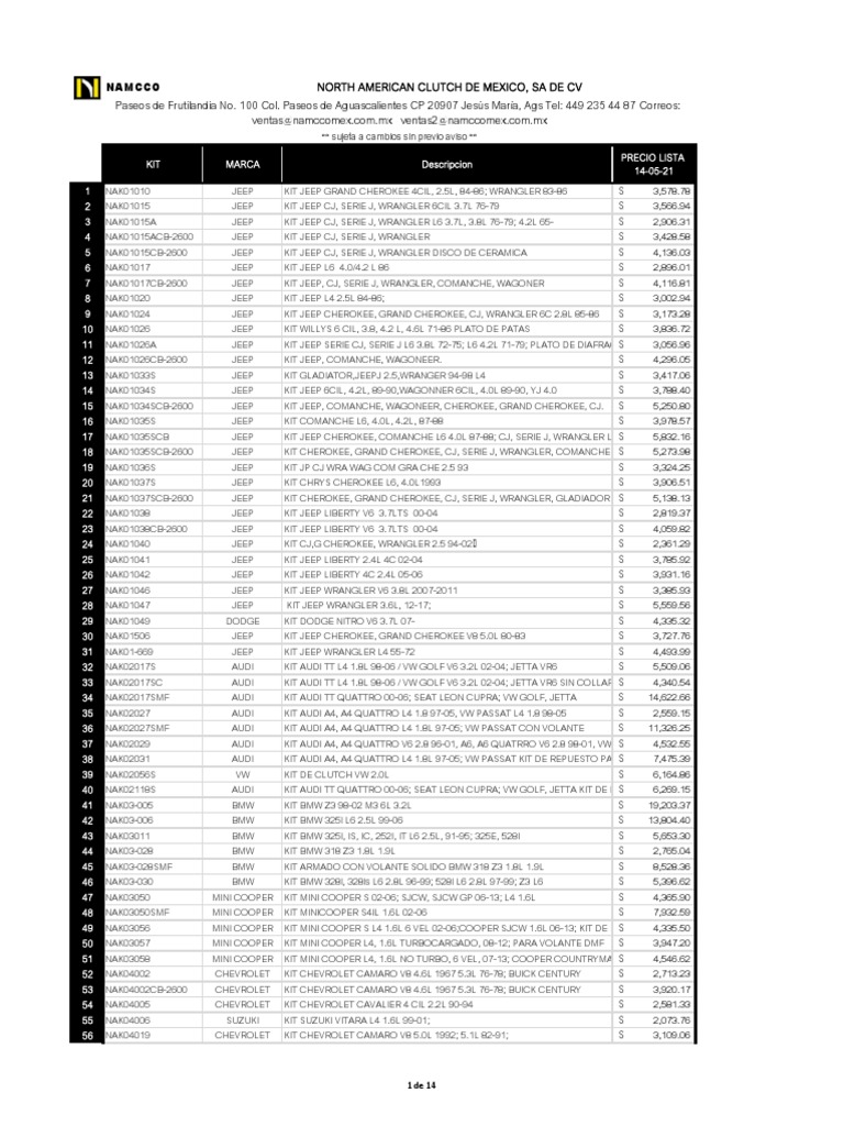 KIT DE CLUTCH NAMCCO Mayo 2021 PDF Dodge Industries