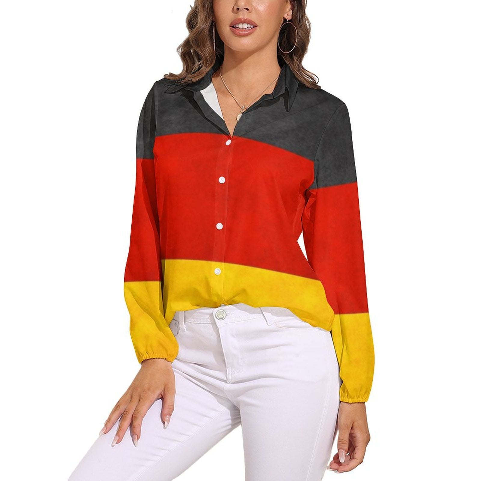 Autumn Women Shirt Tops German National Flag Long Sleeve Women's