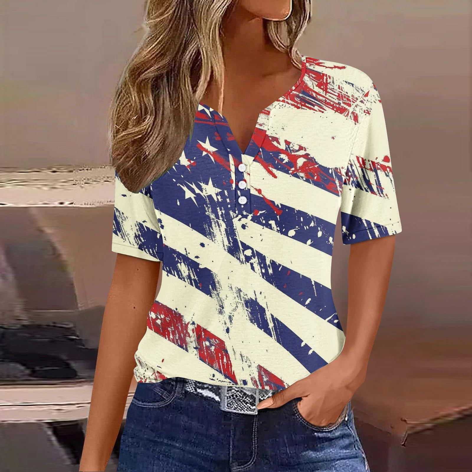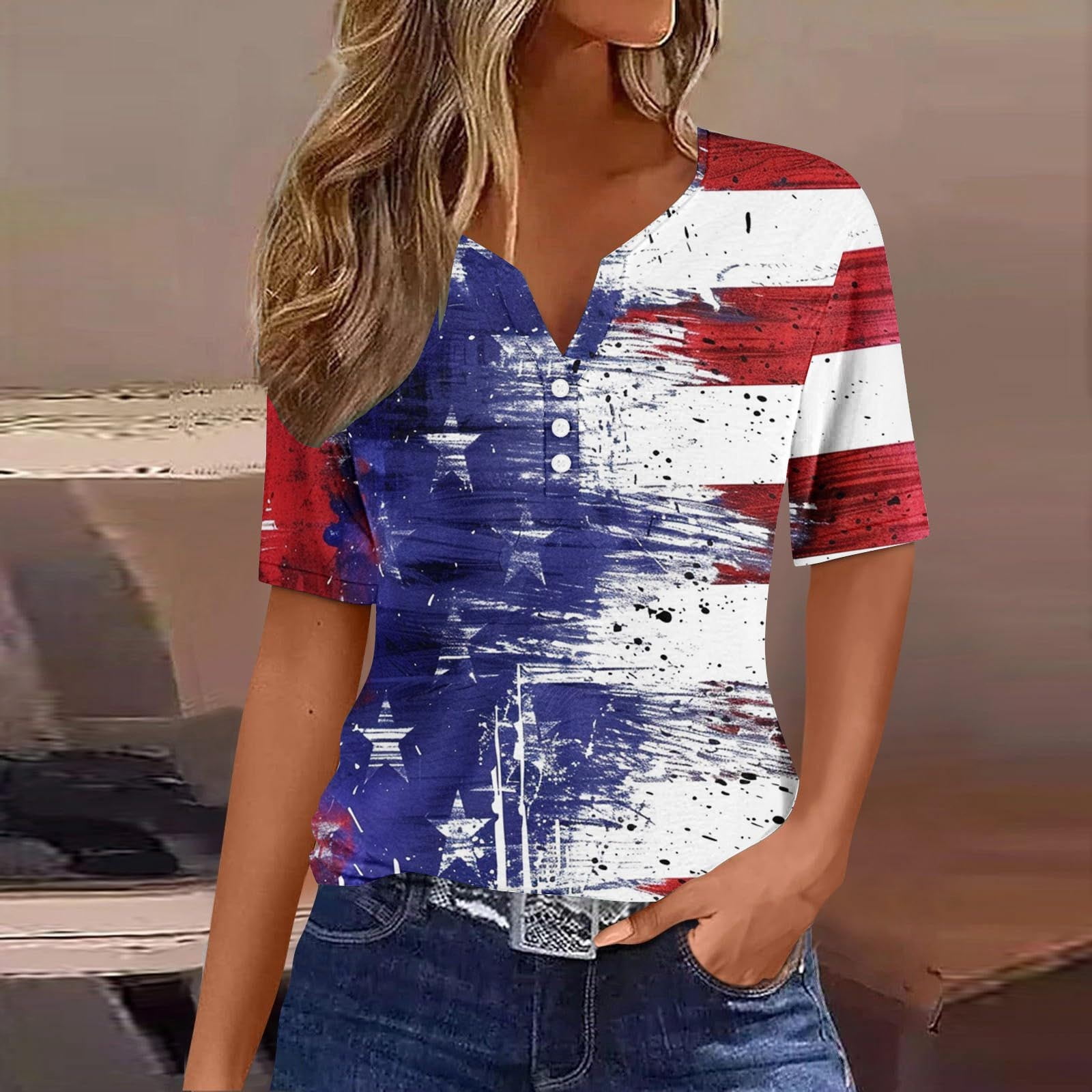Qulqfy Memorial Day Ladies Tops Patriotic Independence Day National