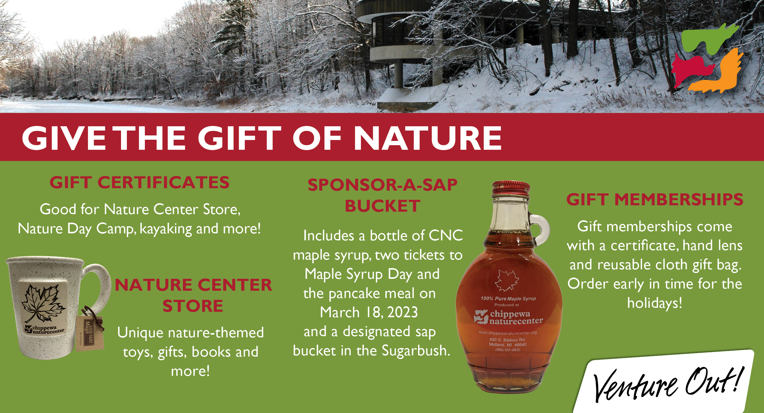 A poster called Gift Giving Guide with ideas for gifts to nature.