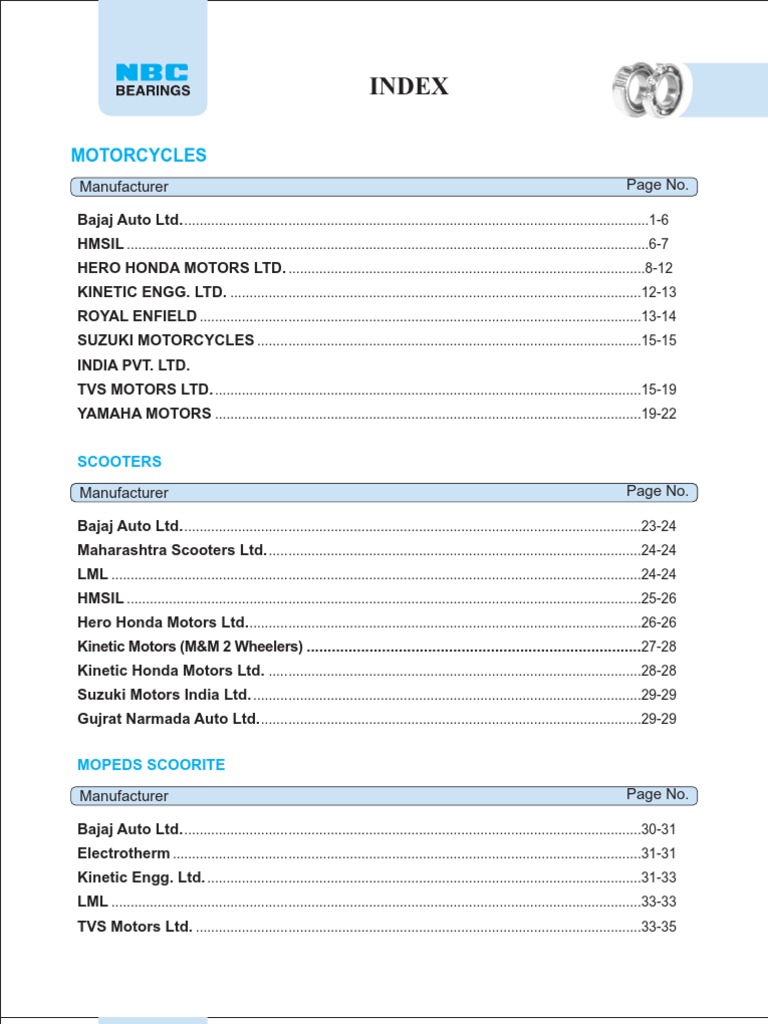 Nbc Bearing Two Wheeler Application Catalog