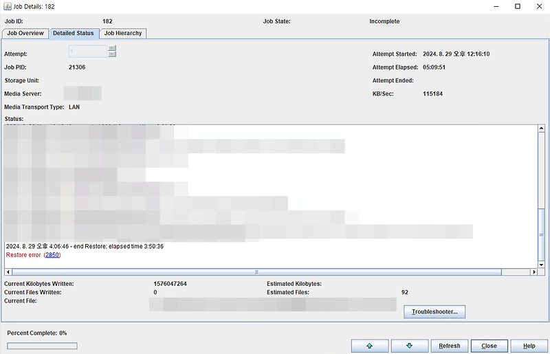 NetBackup Restore 2850 error 해결 방법 Benjamin's Note