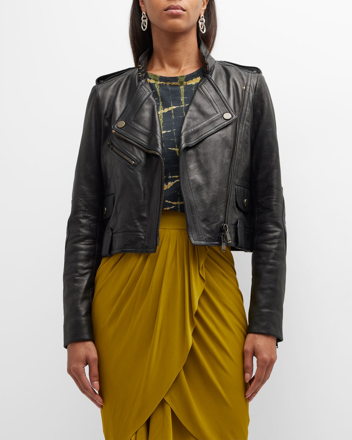Neiman Marcus Leather Biker Jacket Brown Jackets, Clothing