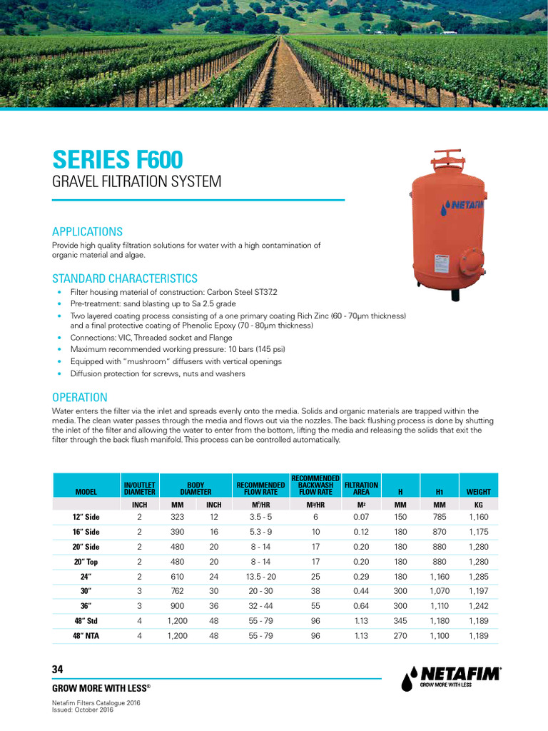 Netafim Filters Catalogue 2016 PDF Filtration Materials