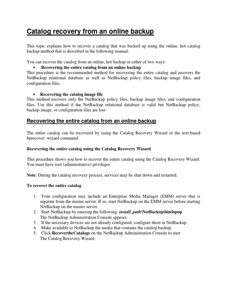 DOCUMENTATION How To Recover A NetBackup Catalog From Disk If The