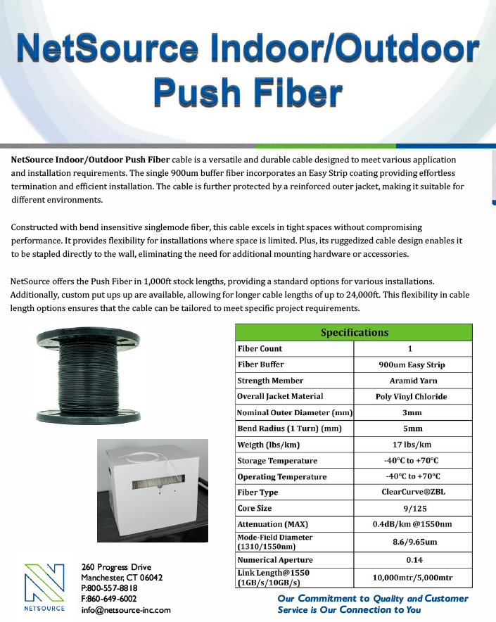 Fiber Optic Broadband Catalog & Cut Sheets Netsource, USA