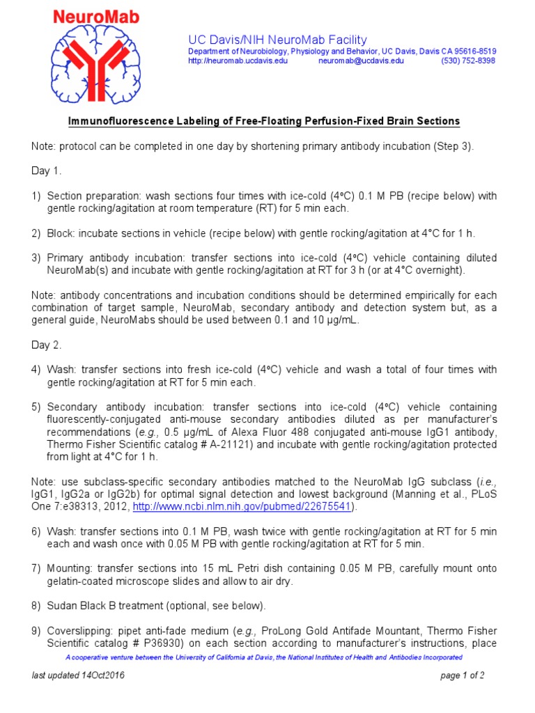 NeuroMab Brain If Protocol 1016 PDF Immunofluorescence
